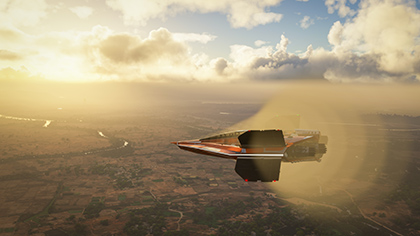 The Flying Fries team is extremely proud of this aircraft, our most ambitious and complex project to date. Fly to the edge of space, reach Mach 7.8 (approximately 5,000 knots ground speed), and manage your fuel burn and fuel production rates to reach any destination thousands of miles away. Then, head west and race the sun. Overtake our star, then carefully manage your descent, and finally land at high speed on a runway which will be barely long enough to bring this heavy spaceship to a complete stop.