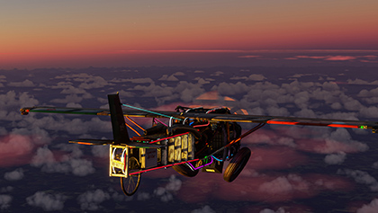 This is a hypothetical result: an airplane with a power-to-weight ratio twice that of a Spitfire! You can take off and land from a helipad or the roof of most buildings. You can choose if you want to fly low and slow (down to 60 knots) or high and fast (over 200 knots). And it's not only here for the joke: The Scrapyard Monster is equipped with all the features and systems you could ever wish for, and even more...